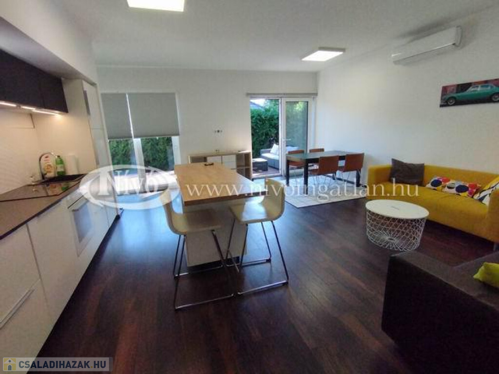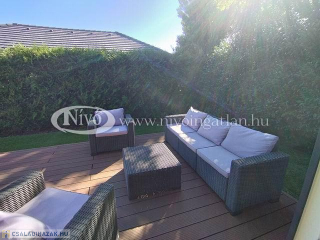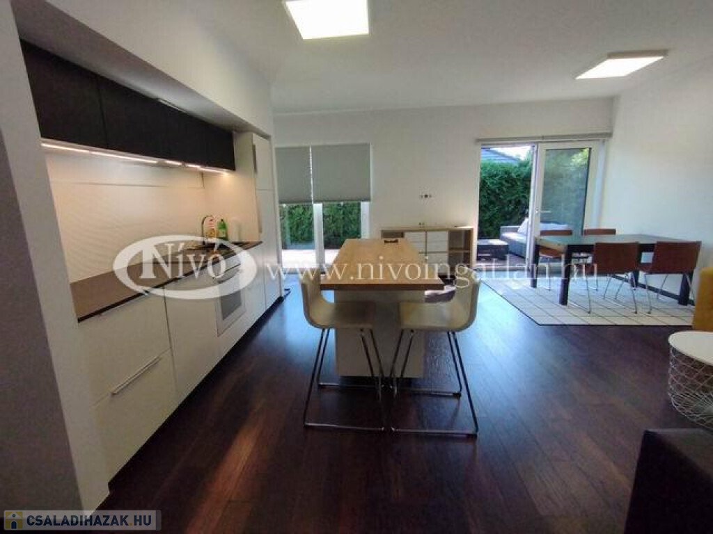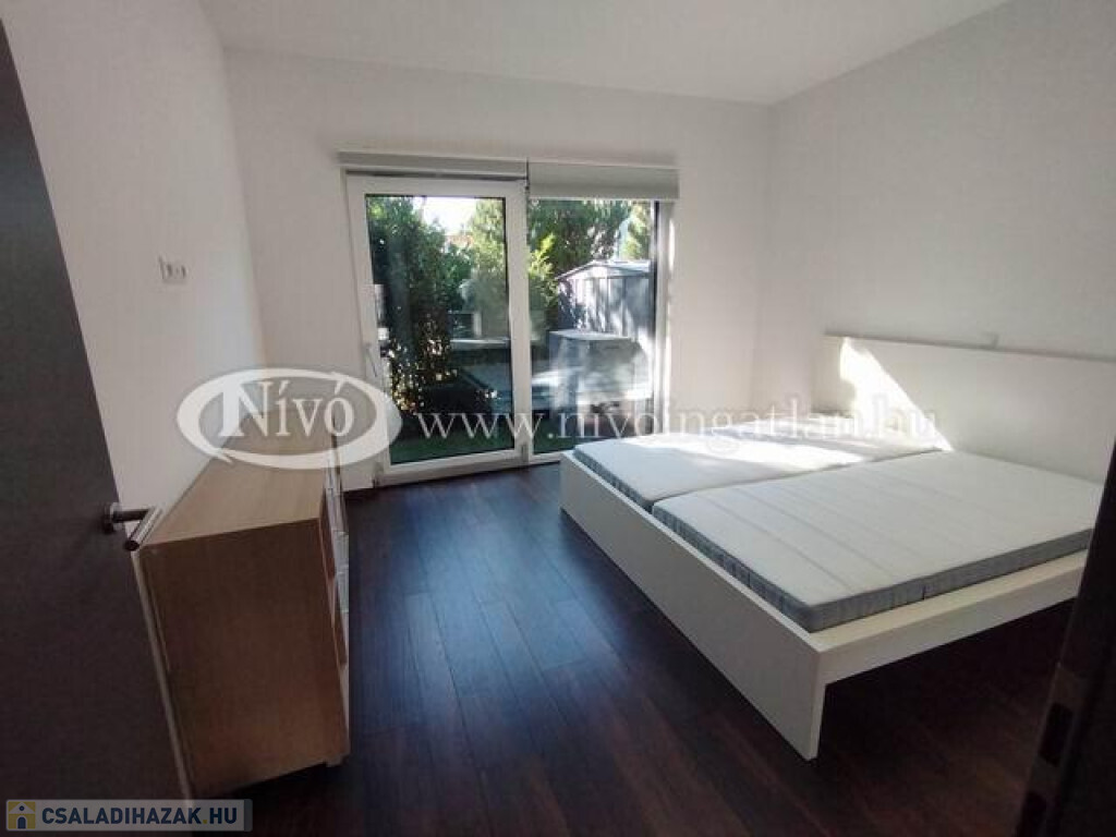Alsóörsön a Balaton part közelében, 2020-ban épült, modern, igényes, egy szintes, 80 m2-es ikerház egyik fele saját, intim 300 m2-es kertrésszel, két kocsibeállóval, hosszú távra kiadó.