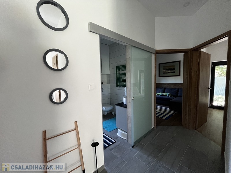 Balatonföldvár nyugodt, csöndes és családias részén, 5 perc sétára a Balatontól kiadó ez a ritkán látható minőségben, 2018-ban épült, összesen 160 nm-es családi ház.
