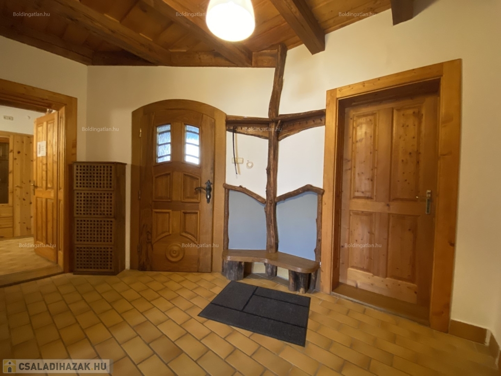 Bárdudvarnokon - kifejezetten csendes, diszkrét környezetben - lévő, Sziklai Ákos építész tervei alapján a 2000-es évek elején épült 330 m2-es, különleges hangulatú családi ház 1.75 ha-os rendezett területen, hosszú távra kiadó. A lakóházban nappali - előszoba - konyha, ebédlő, kamra, közlekedő, olvasószoba, 1 szoba, fürdőszoba, wc helyiségek találhatóak. A felső szinten galériás közlekedő, 3 szoba, fürdőszoba-wc helyiségek kerültek kialakításra. A lakóház fűtése Buderus gázkazánnal, illetve a nappaliban található cserépkályhával megoldott. A lakóházhoz tartozó területen halastó, termő szőlő, vannak. Telek: 17.505 m2