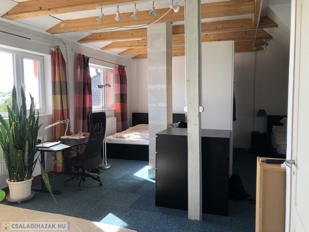 63 nm-es nagy helyiség, ideális edzőterem / dolgozószoba / hálóhelyiség számára, + 20 nm raktárhelyiség (fürdő-, és gardrób-szoba kiépítésnek lehetőségével).