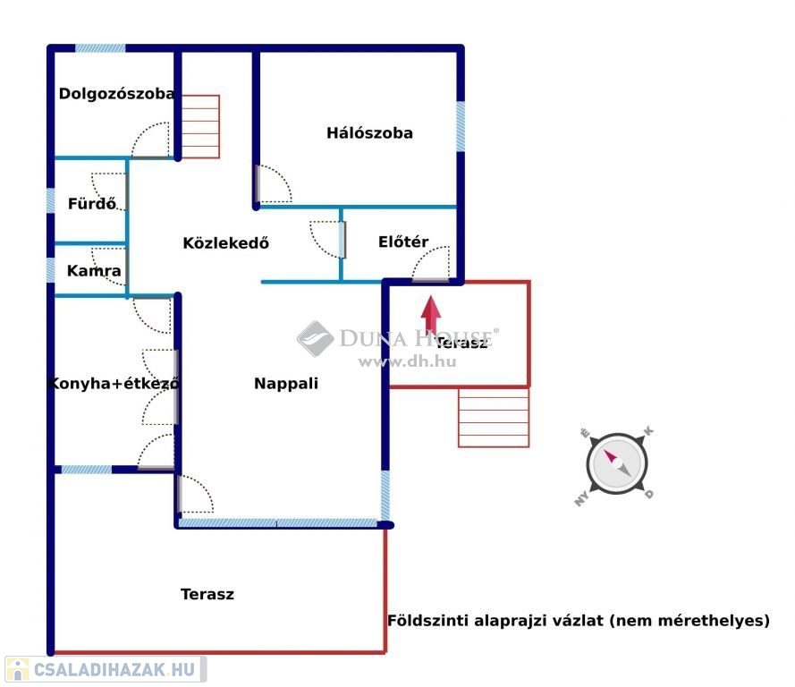 A földszinti szinten kandallós NAPPALI 40 nm-es NAPOS terasszal, kényelmes külön konyha étkezővel, hálószoba, dolgozószoba, és kádas fürdőszoba került kialakításra.