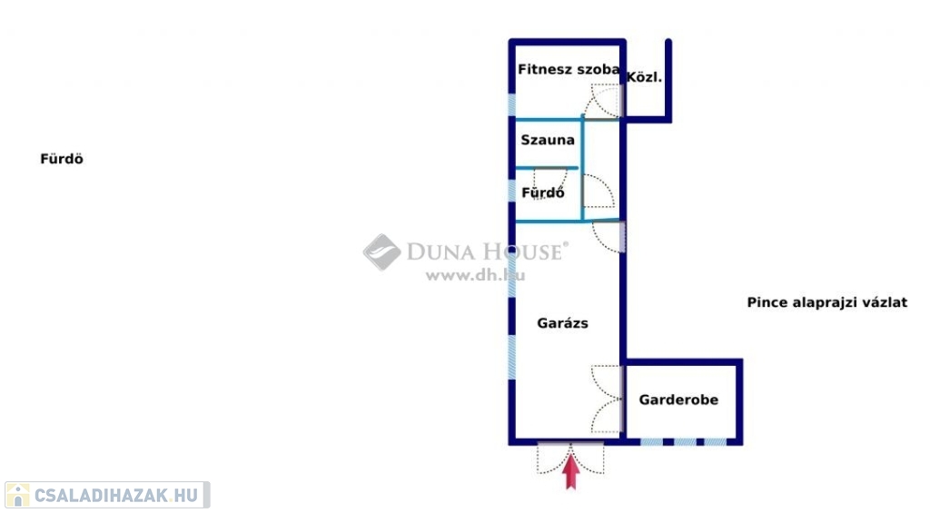 Az ingatlan alagsori szintjén 2 autó részére garázs, tároló, szauna zuhanyozóval, fitneszterem található.