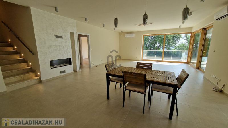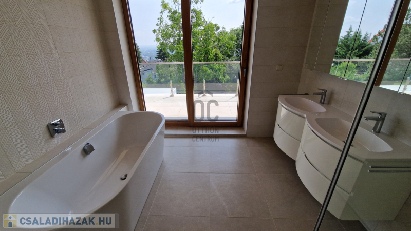 Budapest III. kerület Táborhegyen az Erdőalja úti iskolához közel kiadó egy újépítésű, luxus minőségben kivitelezett ikerházfél.
