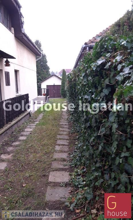 A bejárattal szemben, a kert sarkában kapott helyet a garázs. Méreténél fogva bármely személyautó, vagy kisbusz is elfér benne és a család kerékpárjainak, vagy motorjának is helyet tud adni. A kertbe több kocsival is be lehet állni, de a ház elött is lehet ingyenesen parkolni a nagy diófa alatt.