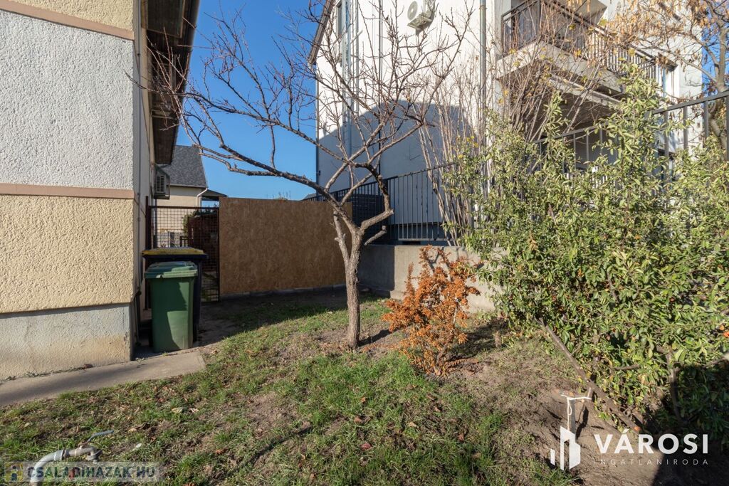 A kizárólagosan használható kertbe saját utcai bejárat vezet. A saját körbekerített kert miatt ez az ingatlan gyermekkel és kisállattal is ideális választás.