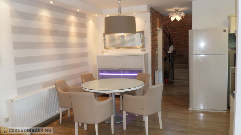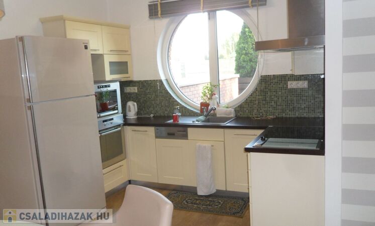 Bútorozva, teljes gépesítéssel, (mosogatógép, mikrohullámú sütő, mosógép szárítóval, porszívó stb). A konyhában beépített sütő, mikrohullámú, kerámialapos tűzhely, mosogatógép.