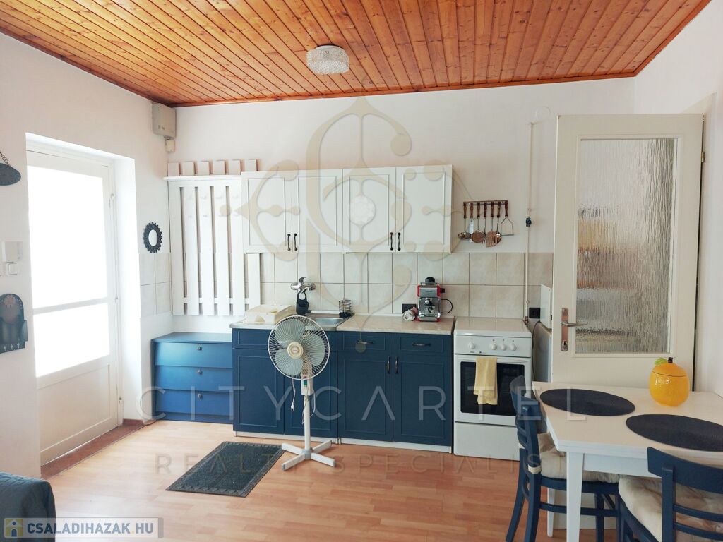 Újszerű állapotban lévő, összkomfortos családi házat kínálunk eladásra a Duna-parti kisváros csendes utcájában. A statikailag és esztétikailag egyaránt kifogástalan állapotban lévő ingatlan a település központjából néhány perc alatt megközelíthető, emellett viszont a terület kertvárosias jellege tökéletes pihenést biztosít az itt élők számára. A 280 nm-es, saját bejáróval rendelkező telken álló ház 2002-ben Porothon téglából épült. Az épület száraz falai 29 nm-es földszinti lakóteret zárnak közre, amelyen a rendkívül tágas és világos étkező-nappalihoz fürdőszoba és WC kapcsolódik. A hőszigetelt tetőtérben 15 nm-es hálószoba foglal helyet. Az apró családi ház fűtéséről gázcirkóval üzemeltetett központi fűtésrendszer gondoskodik radiátoros hőleadó tagokkal. A kellemes hangulatú házikóhoz kapcsolódó terasz és az épület melletti, gondozott kert tökéletes környezetet nyújt fiatalok és idősebbek számára egyaránt.