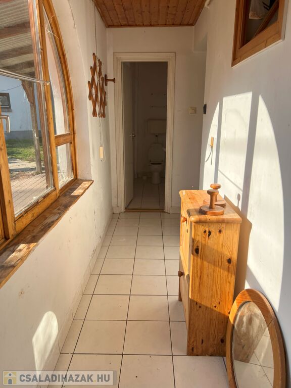 • Ház elosztása: található egy zárt veranda, egy tágas nagy szoba, egy kisebb szoba, egy fürdőszoba, egy spájz, valamint egy konyha étkezővel.