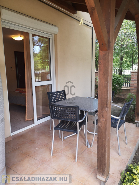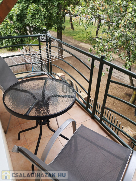 A kert parkosított és egy kis tároló is tartozik hozzá. Az udvarra 2 autóval be lehet parkolni és a ház előzz az utcán is van parkolási lehetőség.