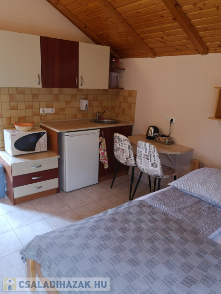 Minden szobához tartozik egy zuhanyzós fürdő+Wc és egy felszerelt konyha. A ház 8 fő egyidejű elhelyezésére kiválóan alkalmas.
