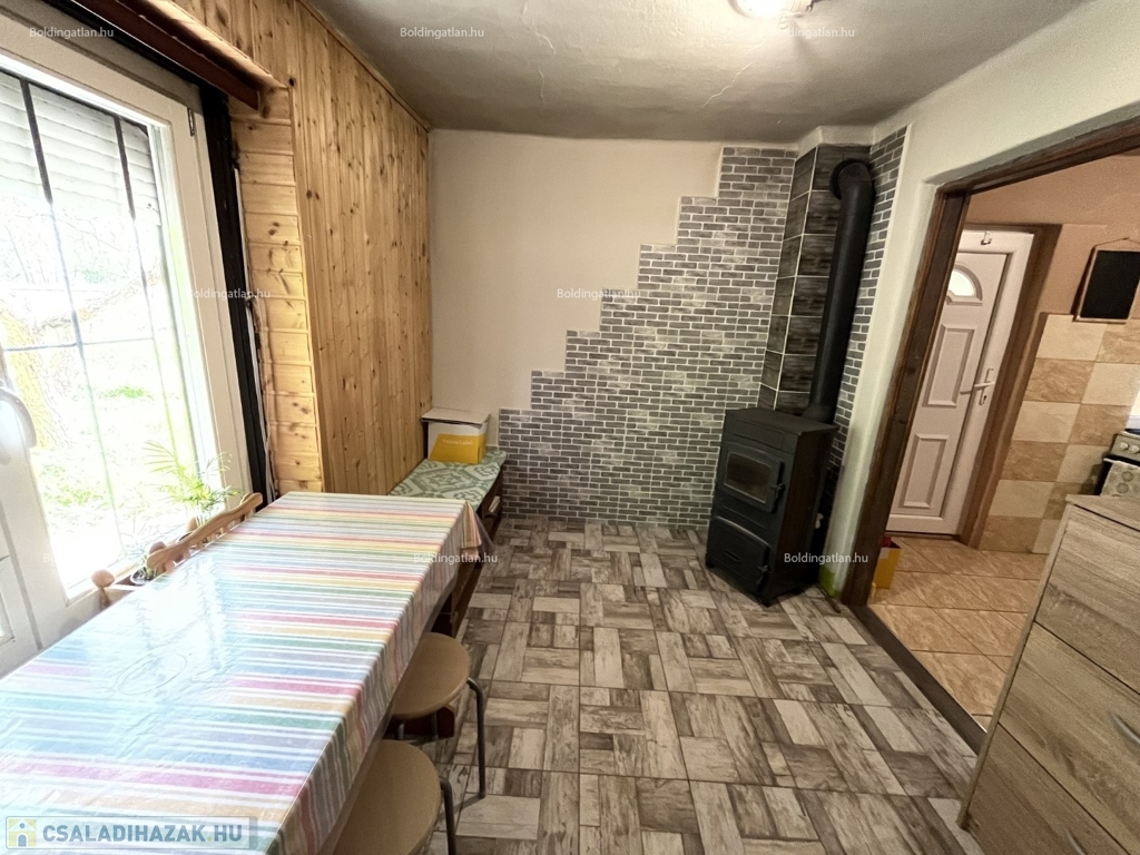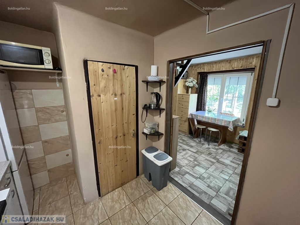 Kaposfüreden a Jutai szőlőhegyen - a vasútállomásnál található - 30 m2-es, akár télen is lakható hétvégi ház kiadó. Az épület földszintjén fedett terasz található, innen nyílik az előszoba-konyha beépített konyhabútorral és mosogatógéppel, fürdőszoba-wc mosógéppel, étkező-nappali, valamint a tetőtérben egy hálószoba került kialakításra. Az épületben a nyílászárók műanyagra lettek kicserélve, a fűtése a nappaliban lévő kandallóval megoldott, a meleg vizet villanybojler biztosítja. A kerítéssel körbekerített udvarban található még tároló, továbbá számos gyümölcsfa is van. Telek: 949 m2