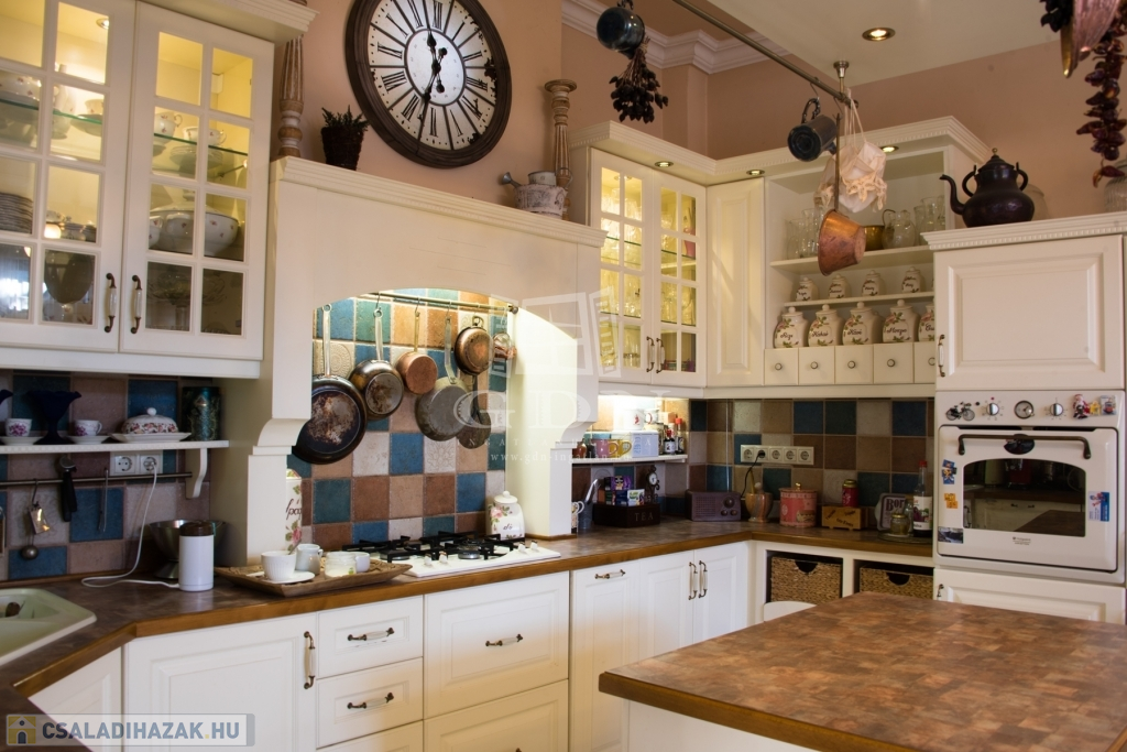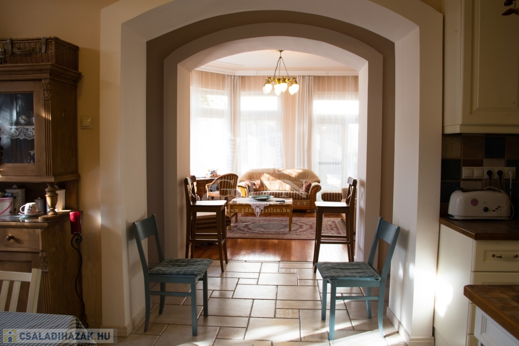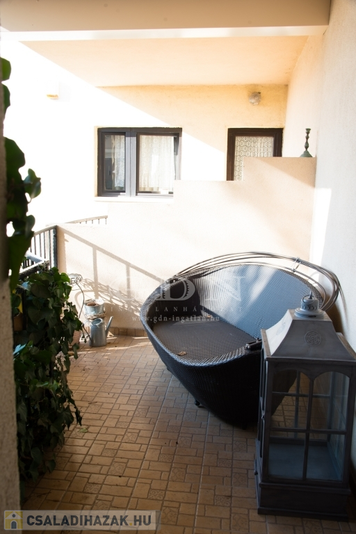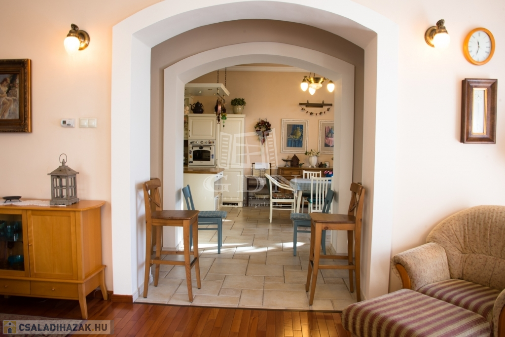 További jellemzők: fúrt kút, 30 nm kerékpártároló, szerszámtároló, utcafronthoz képest magasabb fekvés, 10 cm szigetelés, 10 éves burkolatok, rózsafa parketta, 3 cm antikolt mészkő teraszburkolat, cirkó fűtés padlófűtéssel kombinálva.