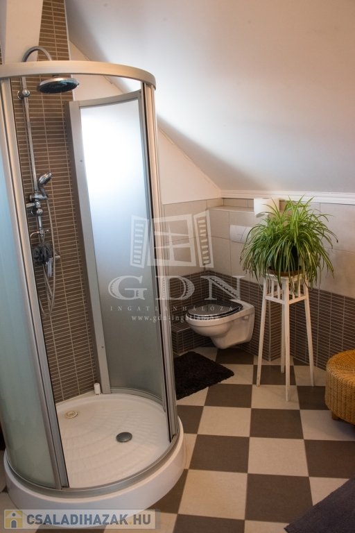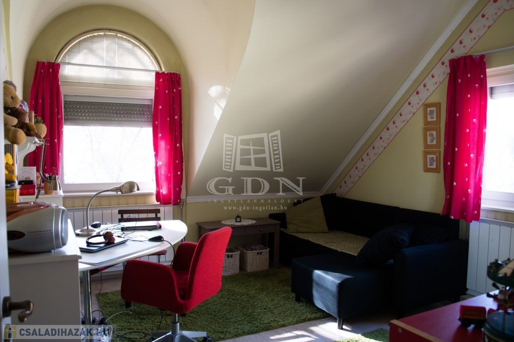 A tetőtérben bruttó 43 nm fiatalos lakótér lett kialakítva, fürdőszobával. A ház rendkívül jó elosztású, tágas terekkel, helyiségekkel rendelkezik, otthonos, kényelmes.