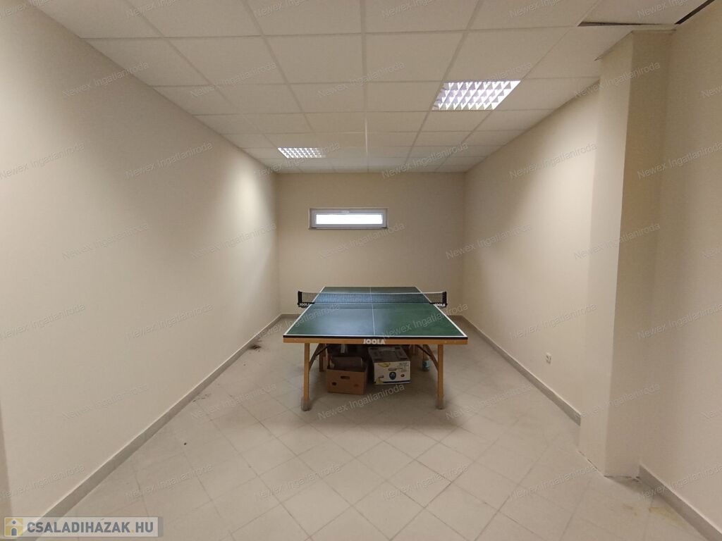 Az egy szintes lakótér alatt található egy alagsori szint is, ahol egy sport szoba, finn szauna zuhanyzókkal, illetve igény szerint tárolóhelyiség is rendelkezésre áll.