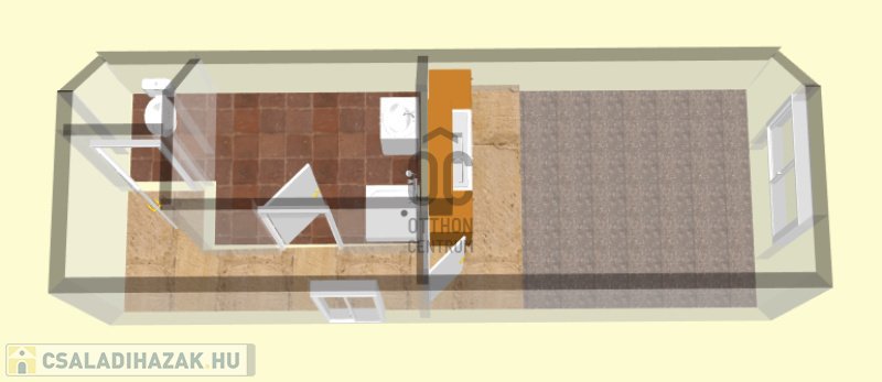 A családi ház tetőterében elhelyezkedő garzonlakás jelenleg bútorozatlan, de a tulajdonos igény esetén bebútorozza.