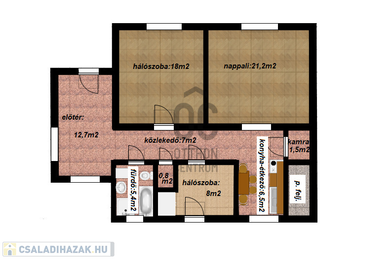 Nappali + 2 háló, külön konyha, kamra, fürdő és mellékhelyiség – pont annyi tér, amire vágysz, mert végre nem kompromisszumot akarsz kötni, hanem jól élni.