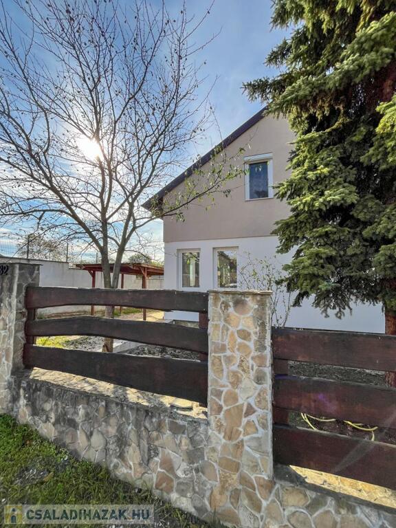 A közel 500 m²-es, gondozott telek kellemes, zöld környezetet biztosít, ahol bőven van hely a pihenésre vagy gyermekjátékra. A nyitott gépkocsibeálló akár két autó számára is kényelmes parkolási lehetőséget kínál, a fedett/beépített terasz pedig ideális helyszín egy csendes reggelihez vagy esti kikapcsolódáshoz.