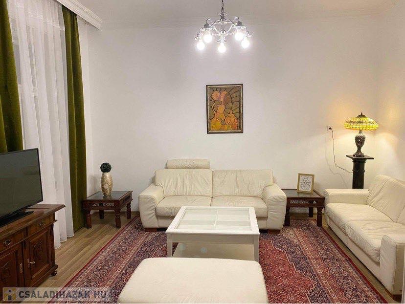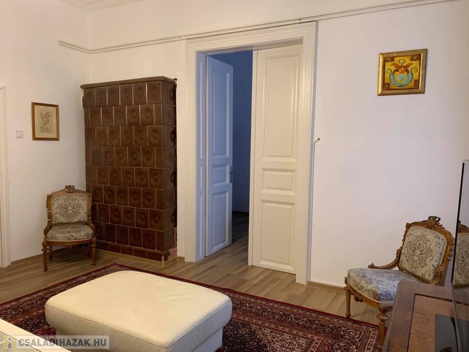 A 100 m2-es házrész egy 4 lakásos műemlék jellegű társasház közös udvarán belül van, kb.200 m2 saját kertrész és 25 m2 terasszal kialakítva. A lakásban 3 szoba, hatalmas étkező,társalgó,ami plusz egy szobának is használható, konyha, fürdőszoba, külön wc és kamra lettek kialakítva. Az egyik szoba közvetlen terasz és kertkapcsolatos, ezzel is fokozva a kényelmet és a luxust. A terek szellősek, jól használhatóak.