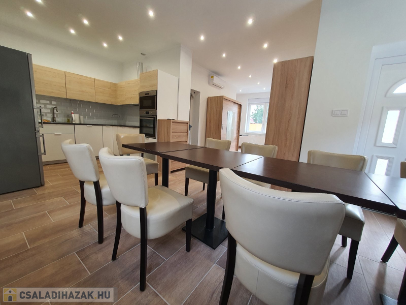 Kiadó Vecsés , kertvárosi részén 2018-ban teljesen felújított, 200 nm-es kétszintes családi ház, önálló kertrésszel. Nappali+ 5 szobás, szobánként saját fürdőszobával.Nagy közös nappali, konyha ebédlővel, rendezett kerttel. A kertben van egy melléképület, ahol egy raktár és egy mosókonyha van kialakítva. Gépesített, jól felszerelt konyha, minden szoba légkondicionált, bútorozott, tv-vel felszerelt, fűtése gáz-cirkóval megoldott. Kertben fedett 2 autós beálló. A kerten belül még 2 autónak van parkolási lehetőség.