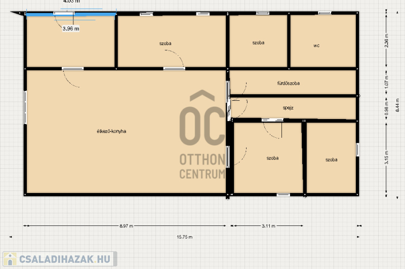 Tágas konyha és nappali áll rendelkezésre,melyből minden szoba külön nyílik. A szobák parketta burkolatot kaptak a felújítás során,ahol az ablakok műanyag,szúnyoghálós rolóval felszereltek.
