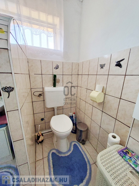 Szobák laminált parkettával és szőnyegpadlóval, többi helyiség járólap aljzat burkolattal van borítva. Melegvízet villanybojler adja.