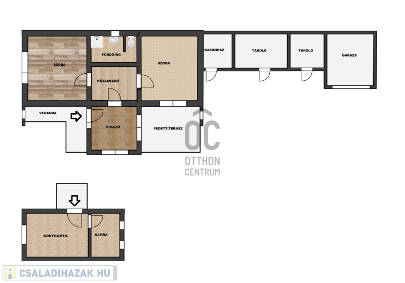 - fűtés gázkazánról és új vegyes tüzelésű kazánról működik, radiátoros hőleadással