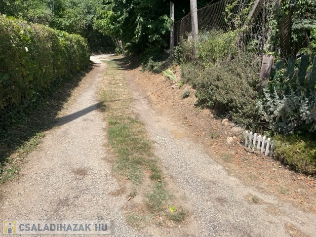 A ház 1397 m2 telken áll, amelynek utcafronti szélessége 38 m, enyhén lejtős terület, kissé trapéz alakú. A kertben számos termő gyümölcsfa, veteményes és dísznövények mellett egy 8 m2-es hőszigetelt (10 cm) faházikó is elhelyezésre került. A gazdaságos öntözést egy 8 m3-es földalatti esővízgyűjtő ciszterna biztosítja.