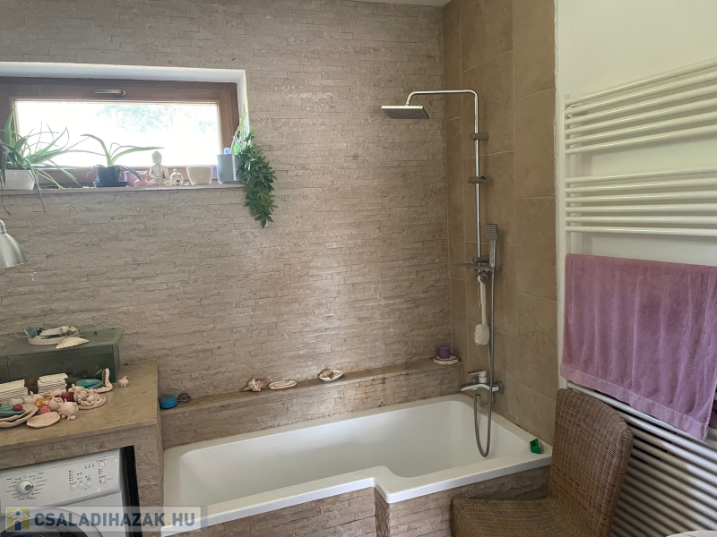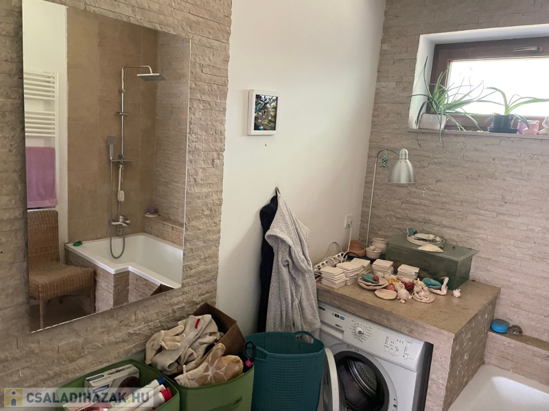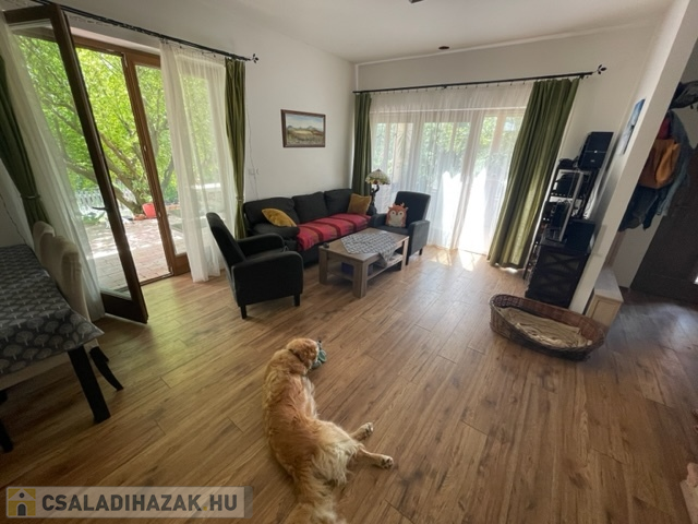 Ábrahámhegy csendes belterületén vált eladóvá ez a 2014-ben épült, kétszintes, 108 m2 hasznos alapterületű, 5 szobás, duplakomfortos családi ház, amely két külön is használható lakóegységből áll, ezért két generációnak, vagy kiadásra is tökéletes választás lehet.