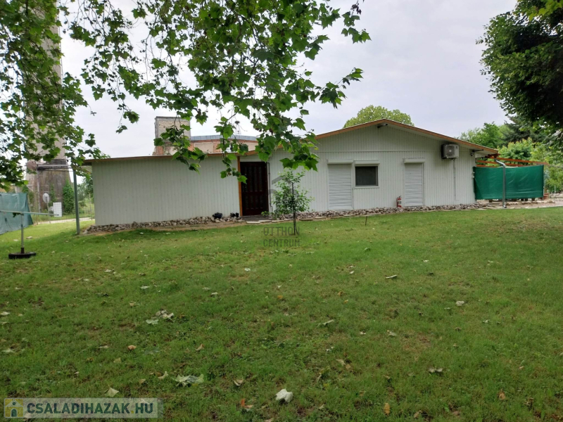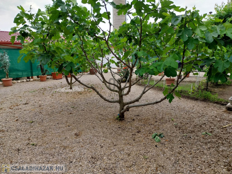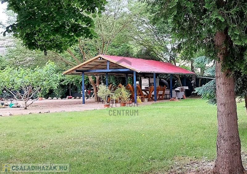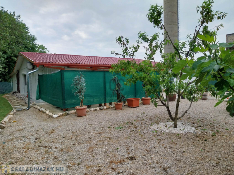 A murvás úton, fák és virágok között egy könnyűszerkezetes, speciális, német szigetelőannyaggal bevont házhoz érünk. Pillantásunkat sem tudjuk levenni róla, ahogy az elkerített terasz mögött ez a műanyag nyílászárókkal ellátott ingatlan elénk tárul. Amennyiben mégis elkalandozik a szemünk balra, láthatjuk, hogy a széles utcafront magas kerítésén belül, az udvarban egy bárpult grillezővel, asztalokkal, fedetten tárul elénk.