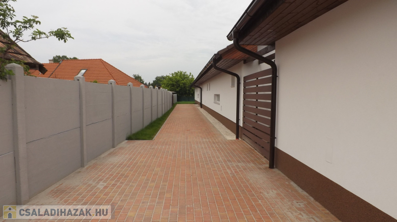Az ingatlan alapterülete124 nm, az előszobából a világos, nagy ablakokkal és teraszajtóval rendelkező, dél-keleti tájolású nappaliba lépünk, amely étkezővel és konyhával egészül ki, így egy tágas térben lehet együtt a család. Külön helyiségben pedig egy zuhanyzóval és wc-vel felszerelt fürdőszobát is használhatunk. A nappaliból a teraszra jutunk ki, amely egy jól használható, privát kertben végződik.