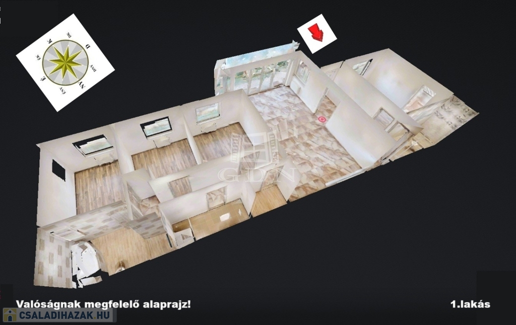 - Elrendezés: 4 hálószoba + nappali + 2 fürdő + kamra + háztartási helyiség