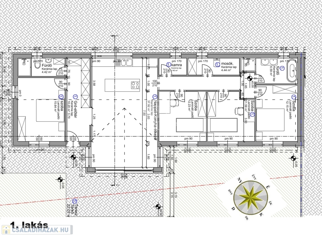 - Terasz: 22 m2, 600m2-es SAJÁT KERT