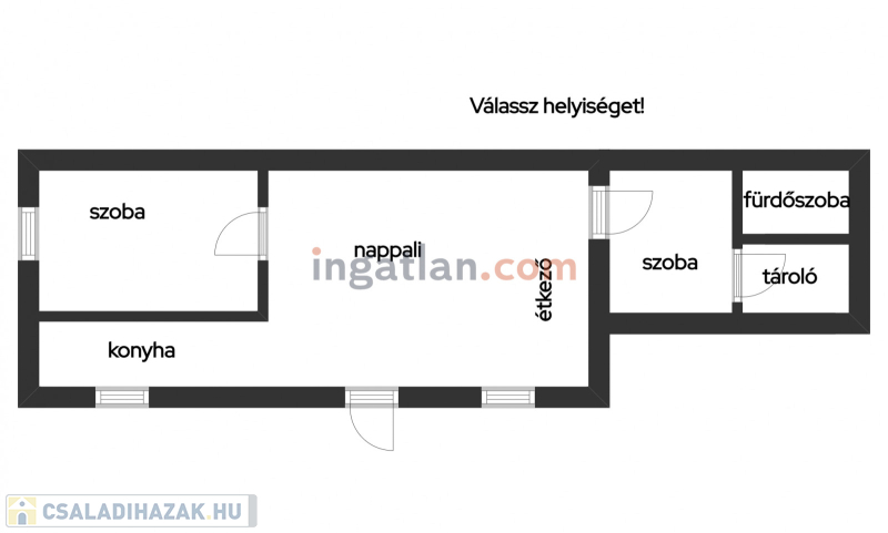 Elrendezés: nappali + étkező, konyha, 1 szoba, 1 félszoba, kádas fürdőszoba, tároló