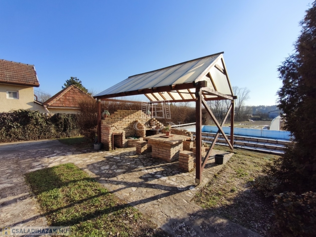 A csendes környezetben található ingatlanból gyönyörű kilátás nyílik a kertre, ahol megpihenhet, lazíthat a medencében, de akár a kerti sütögetőt használva vendégeket is fogadhat.
