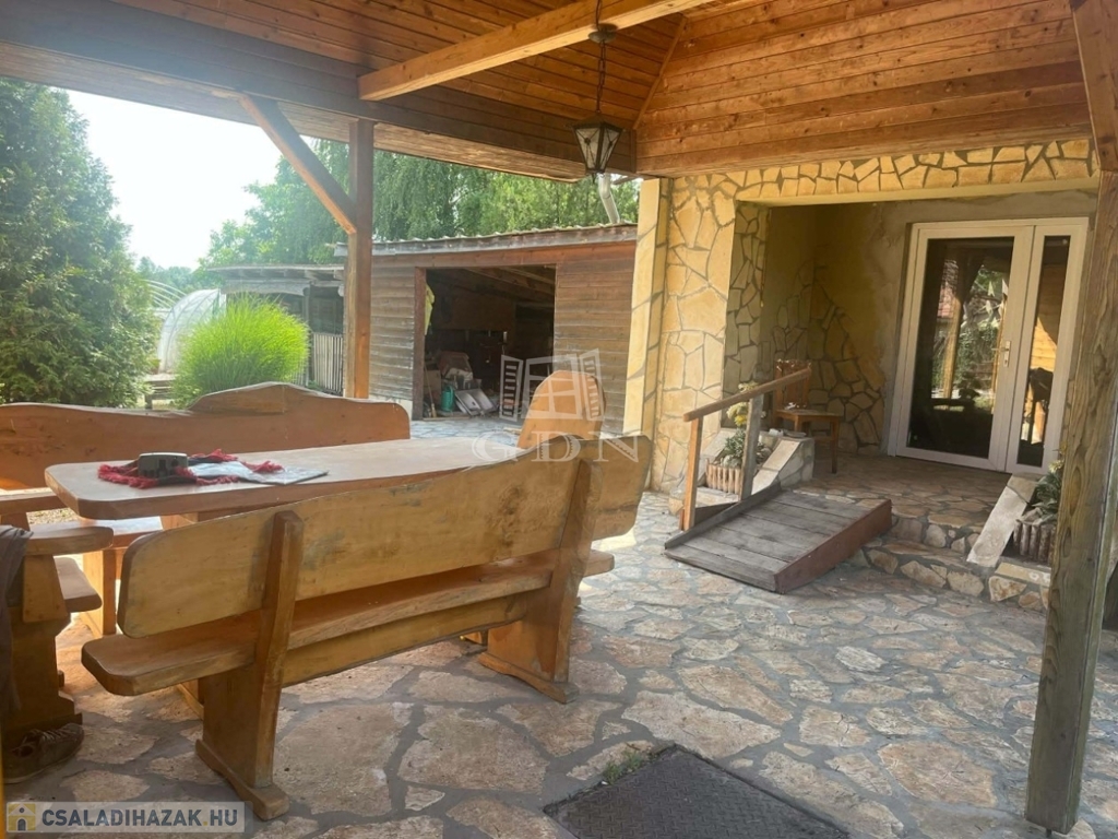 A ház alapterülete 62 nm, 2 és fél szoba, konyha, fürdőszoba, amelyhez egy 27 nm terasz is tartozik, ami egy 31 nm téliesített faházhoz kapcsolódik, ebben található szoba, konyha, nappalival és fürdőszoba, alatta 16 nm pince. A telek 2809 nm, aminek a hátulsó része gazdálkodásra is alkalmas. A ház fűtéséről gázkazán gondoskodik, így a téli hónapokban is kellemes a meleg.