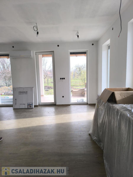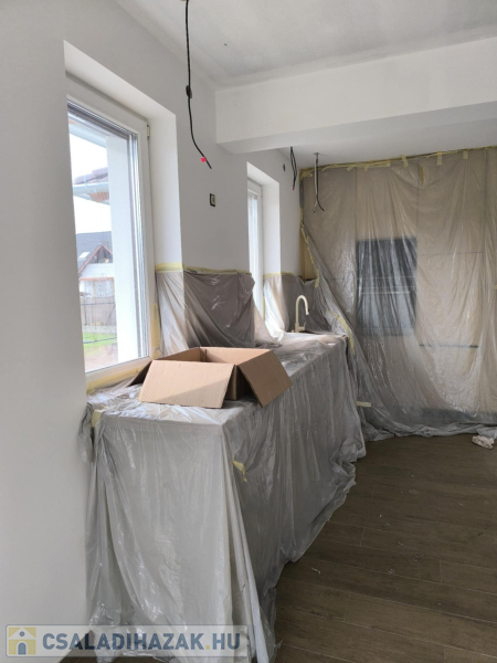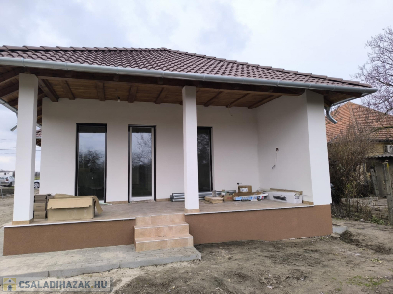 723 m²-es telken épülő, 74,4 m²-es modern családi ház, 15,5 m²-es terasszal. Minőségi alapok: vasbeton sávalap, Porotherm falazat, fafödém cellulóz szigeteléssel, Terrán tető, hőszigetelt homlokzat. Nyílászárók: fehér műanyag külső, fa belső.Helyiségek: amerikai konyhás nappali teraszkapcsolattal, 2 háló, fürdő, külön WC, közlekedő. Az ár tartalmazza:- Burkolatok: laminált padló 5.000 Ft/m², járólap/csempe 7.000 Ft/m²- Fehér festés- 2,8 kW napelem- Padlófűtés + kondenzációs kazán- 3,5 kW klíma Törölközőszárítós radiátor- 1×32 A elektromos hálózat- Redőny előkészítés- 2 WC, szaniterek 250.000 Ft-ig, épített zuhany- Viacolor járda kaputól a házig és teraszig. Egyedi igények teljesítése, megtekinthető referenciákkal. A képek az előző munka folyamatáról készültek! Az építkezés foglalózás után kezdődik, kivitelezés 6-8 hónap. Nyugati – 48 perc Budapest: 50 km, Ferihegy repülőtér: 35 km (M4 autópályán) Ne maradjon le erről a lehetőségről! Hívjon bátran hétvégén is: Alitisz Judit 0620 4004009 Nézze meg a képeket – és ha el tudja képzelni itt új otthonát, hívjon bizalommal!