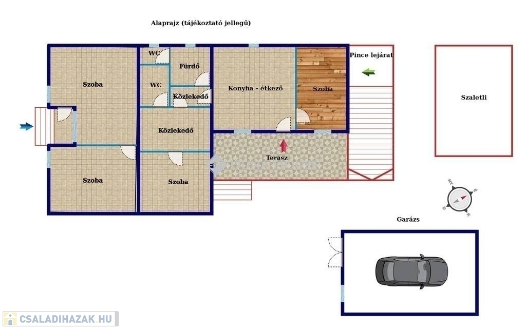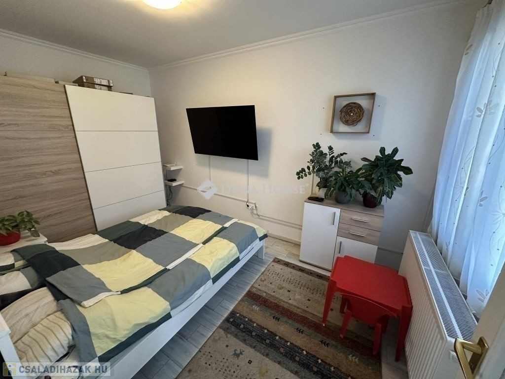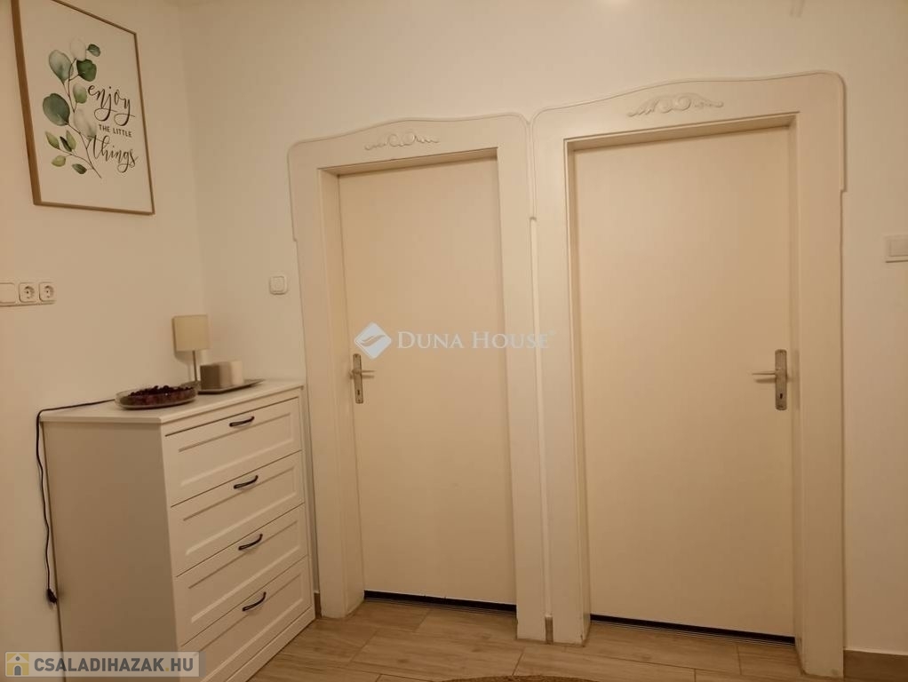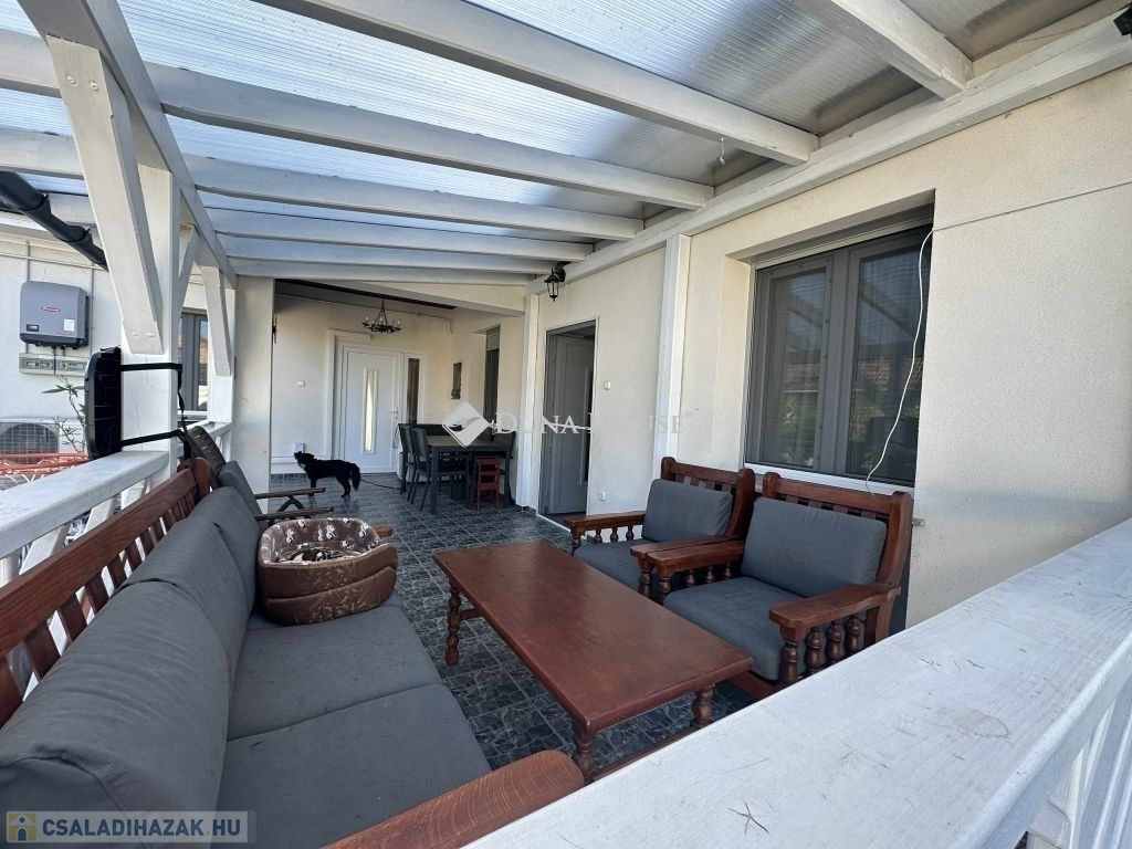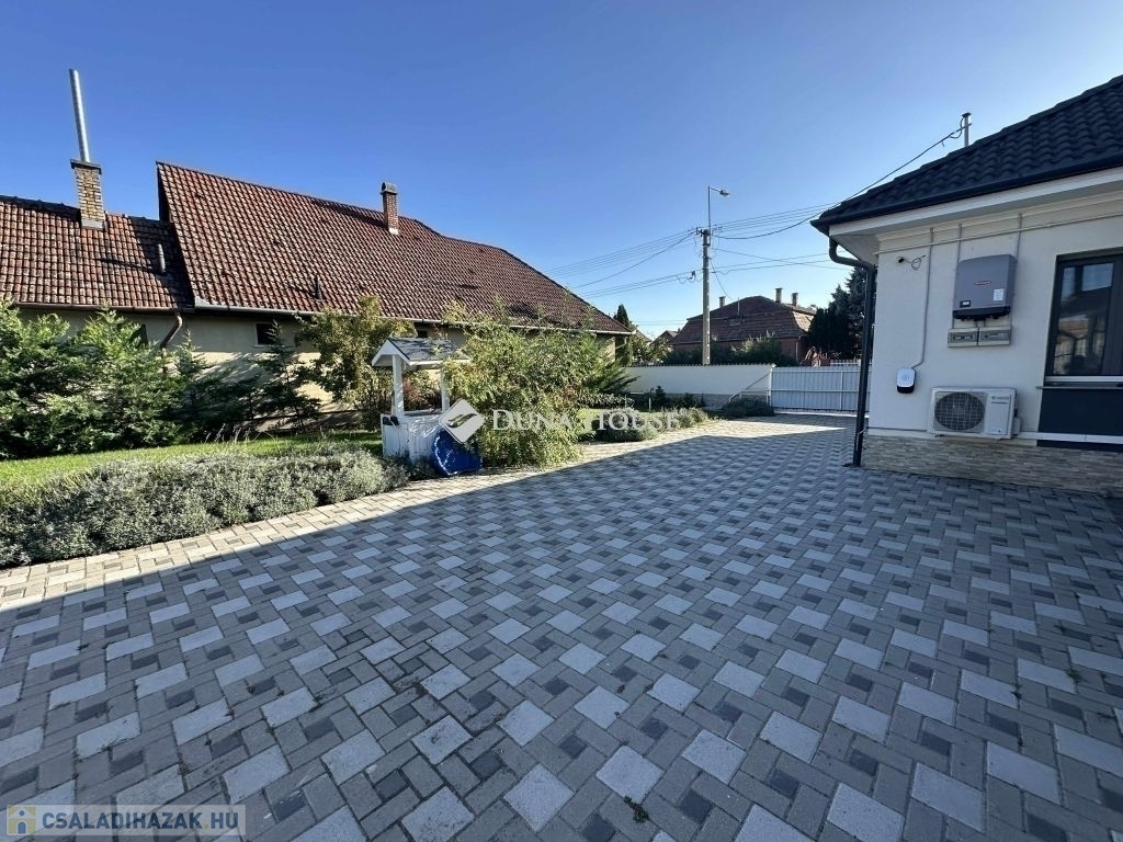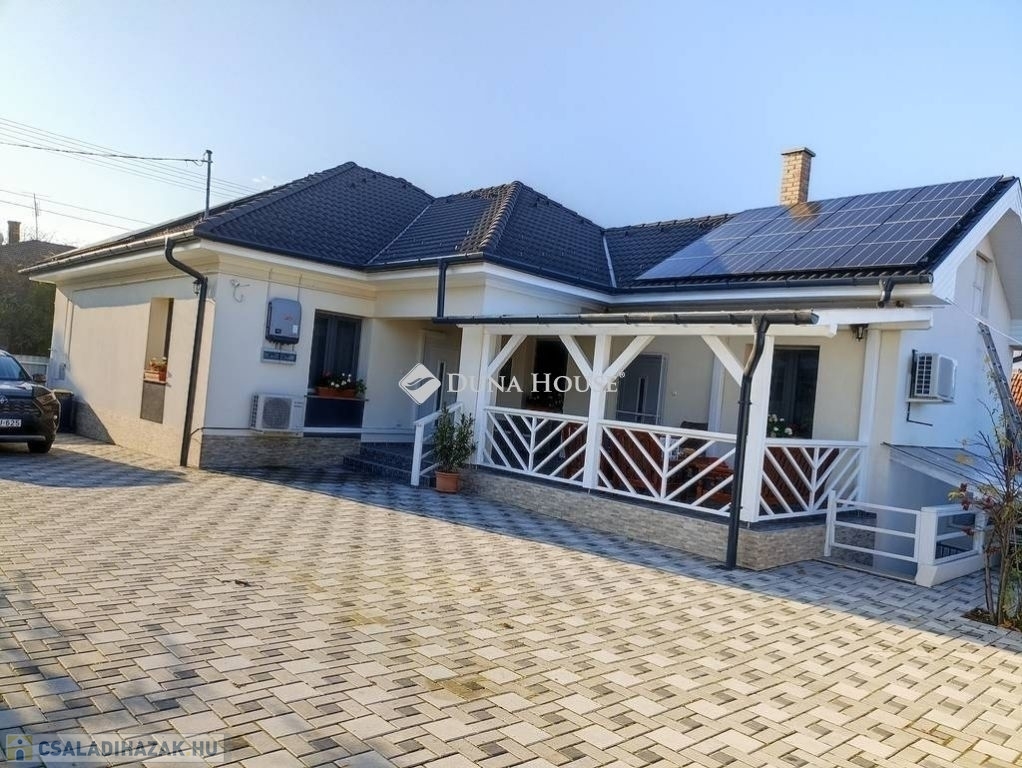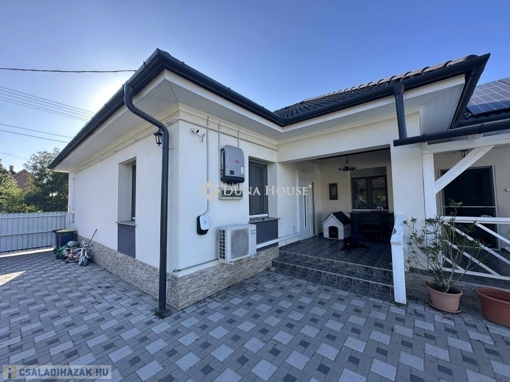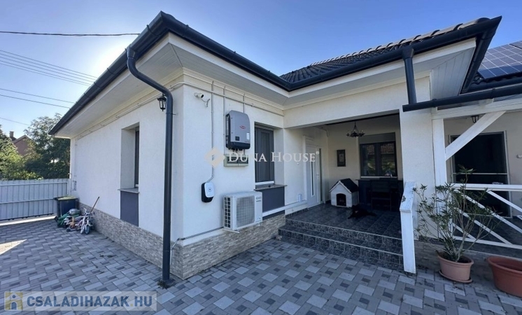 Az ingatlan lokációja kiváló lehetőségeket rejt magába. Az épületben négy szoba, konyha, étkező, közlekedő, fürdő, valamint wc helyiségek lettek kialakítva. Az utcafrontról is megközelíthető, jelenleg szobaként funkcionáló helyiségek, kiváló lehetőséget nyújtanak üzlet, iroda vagy akár vendéglátó egység kialakítására. A lakórésztől való elszeparálás átalakítás nélkül megoldható. A jelenlegi tulajdonos épületenergetikai szakember. Gondos odafigyelésének köszönhetően a mindenre kiterjedő felújítás végén, korunk energetikai es esztétikai elvárásainak teljes mértékben megfelelő álomotthon született. A rekonstrukció során a tető Bramac antracit cseréppel lett fedve melyre 6,67 kW teljesítményű 15kW-ig bővíthető Q-cells napelemek kerültek felszerelésre. A megtermelt elektromos energia szaldós elszámolású. Az új födémgerendák 15 cm vastag Rockwool kőzetgyapot szigetelést és 22 mm-es osb fedést kaptak. A teljes épületben álmennyezet lett kialakítva melybe további 10 cm-es hőszigetelés, valamint a 3 fázisú egyenként 16 A-es elektromos hálózat vezetékei kerültek bevezetésre. A nyílászárók háromrétegű, gyárilag hőszigetelt üvegezéssel, erősített roto vasalattal rendelkeznek. A 60 cm vastag külső falak 5-10 cm hungarocellszigetelést kaptak. Az otthon fűtéséről-a napelemeknek köszönhetően díjmentesen működő kettő darab Nord, telefonról is vezérelhető klíma, valamint a meleg víz előállítását biztosító, a radiátorok és a padlófűtés fűtési vizét melegítő Baxi Nuvola beépített tartályos gázkazán gondoskodik. A fűtés szintén vezérelhető okostelefonról is. A riasztó és kamerarendszernek köszönhetően Ön bárhonnan felügyelheti otthonának biztonságát. A viacolorozott udvarról elérhető fedett terasz a 30 nm alapterületű tágas szaletli tökéletes színtere lehet családi rendezvényeknek melyeken a gyermekek önfeledten játszhatnak a parkosított udvaron. Gépkocsiját a fűtött, különálló garázsban tárolhatja.