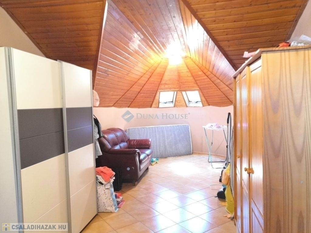 A felső szint az alsó szint előteréből elérhető, itt egy nappaliként, társalgóként is használható, tágas helyiségből nyílik 4 hálószoba, és egy fürdőszoba + wc. Az ingatlan kitűnő elrendezésű, szobái, a nappalit is beleértve mind külön nyílóak. A helyiségek terei igen tágasak, mely egyedi, páratlan hangulatot kölcsönöz az egész lakótérnek.