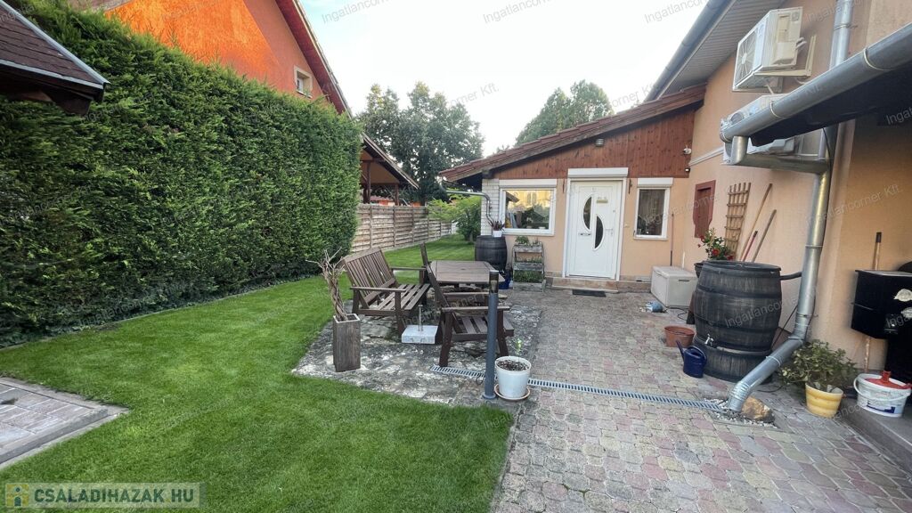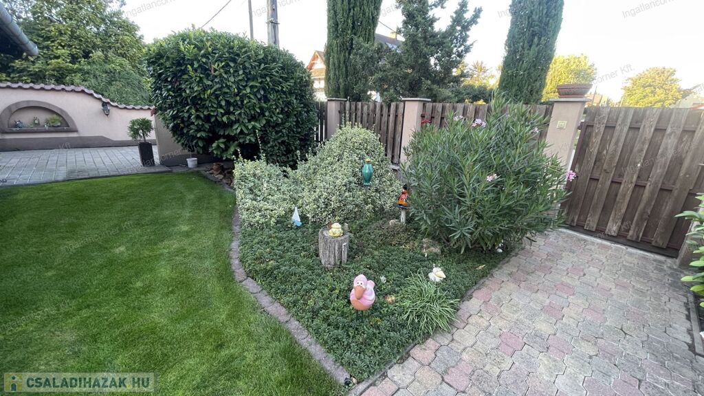 A ház rendszeresen karbantartott, a gyönyörűen parkosított kert és a családias környezet igazi otthonos hangulatot áraszt.