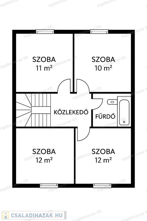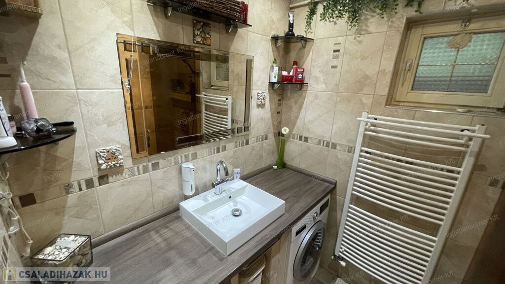 2 fürdőszoba: földszinten zuhanyzós, emeleten kádas.