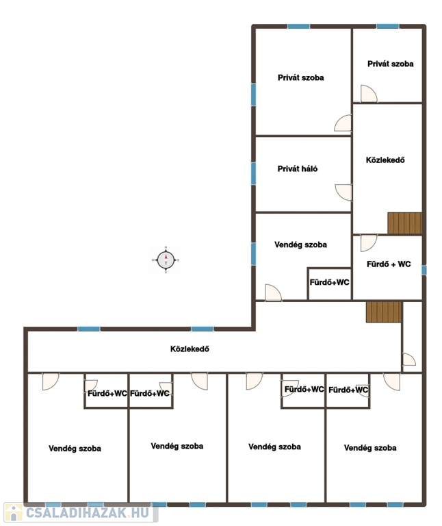 Vendégeknek 6 különálló szoba, mindegyik saját fürdőszobával és WC-vel