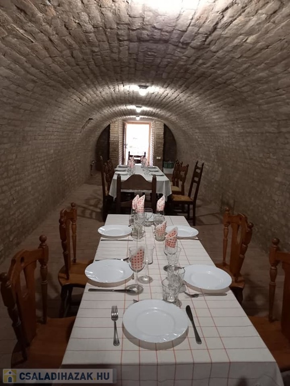 Vendégek részére felszerelt közös konyha, ápolt udvar és hangulatos borospince