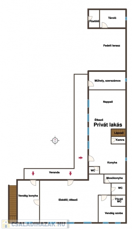 Privát lakótér: 3 szoba + nappali + dupla komfort (összesen 100 m²), modernizált, külön bejárattal