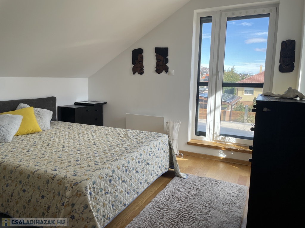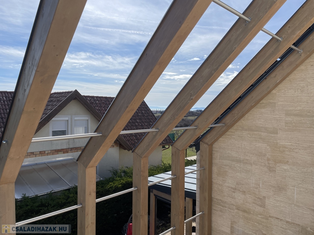 Az emeleten egy 10 m²-es panorámás terasz várja, ahonnan a kilátás minden napszakban más arcát mutatja – reggeli fények, aranyló naplementék és csendes esték teszik teljessé a balatoni élményt.