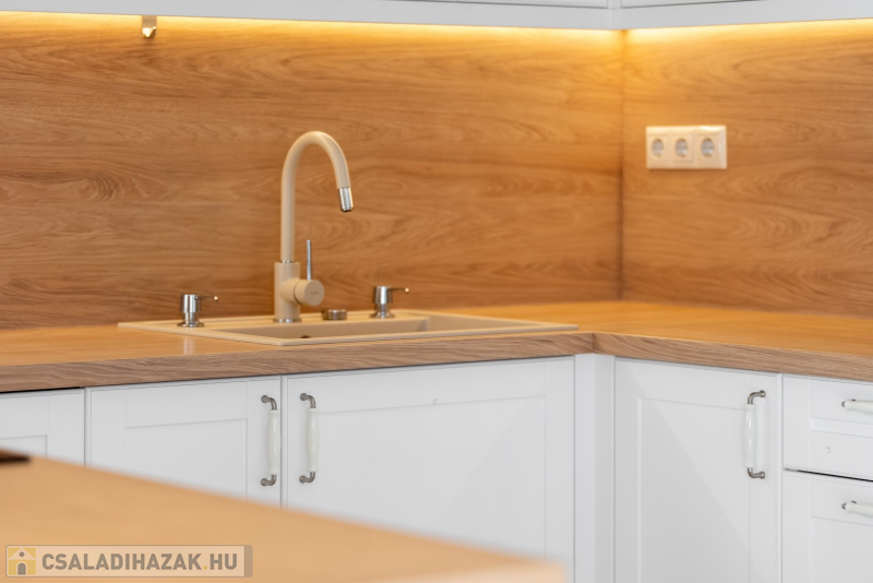 - burkolatok : tölgy szalagparketta, kerámia a vizes helyiségekben