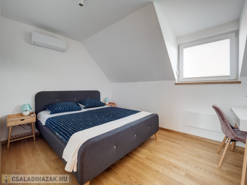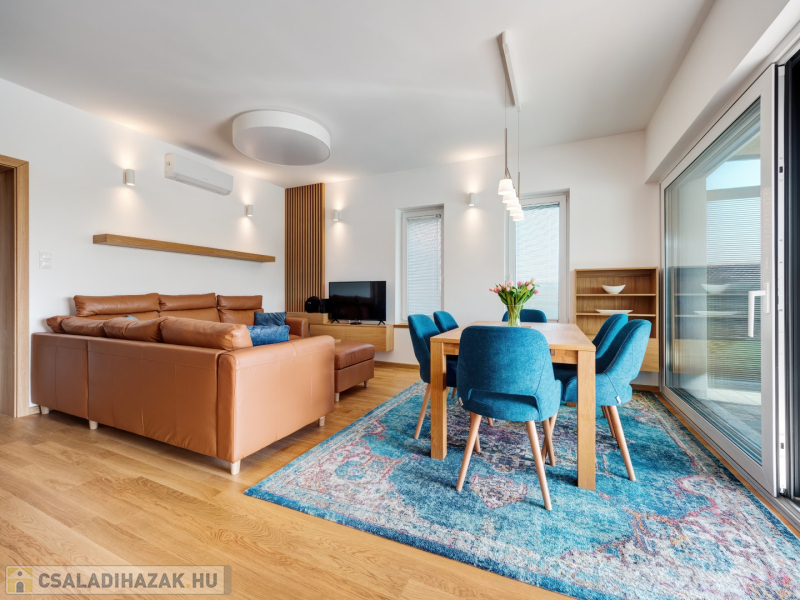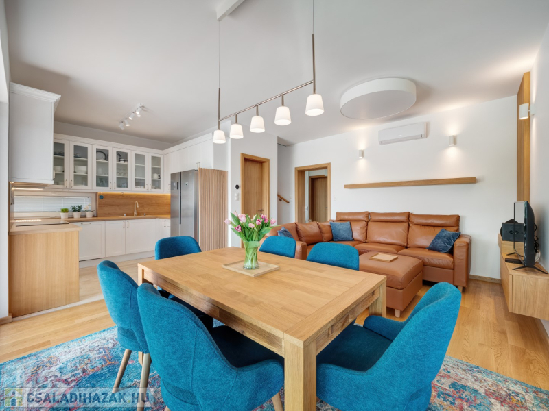 Alsóörs csendes, nívós részén, újszerű családi házak környezetében kínálunk eladásra ezt a minden igényt kielégítő, 2022-ben épült ikerház hátsó, nem utcafronti részét, 472 m2 telekrésszel.