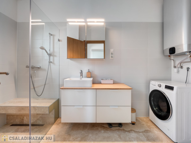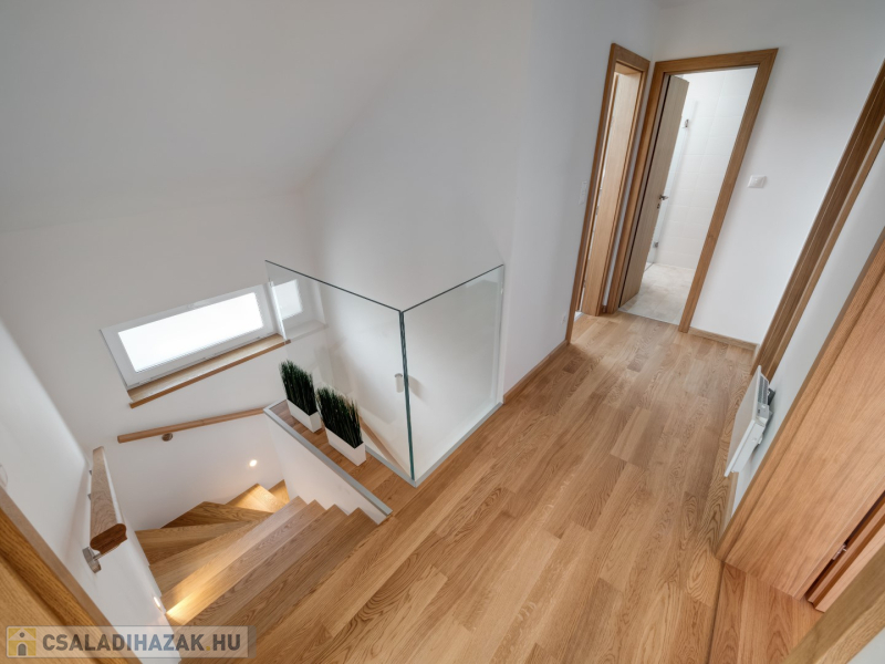 - üveg zuhanykabin - emelő-toló teraszajtók - lépcső alatt kamra kerül kialakításra - tölgyfa lépcsőburkolat