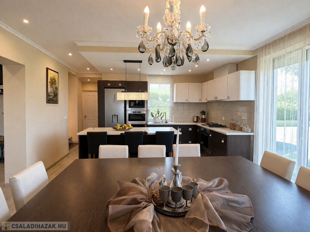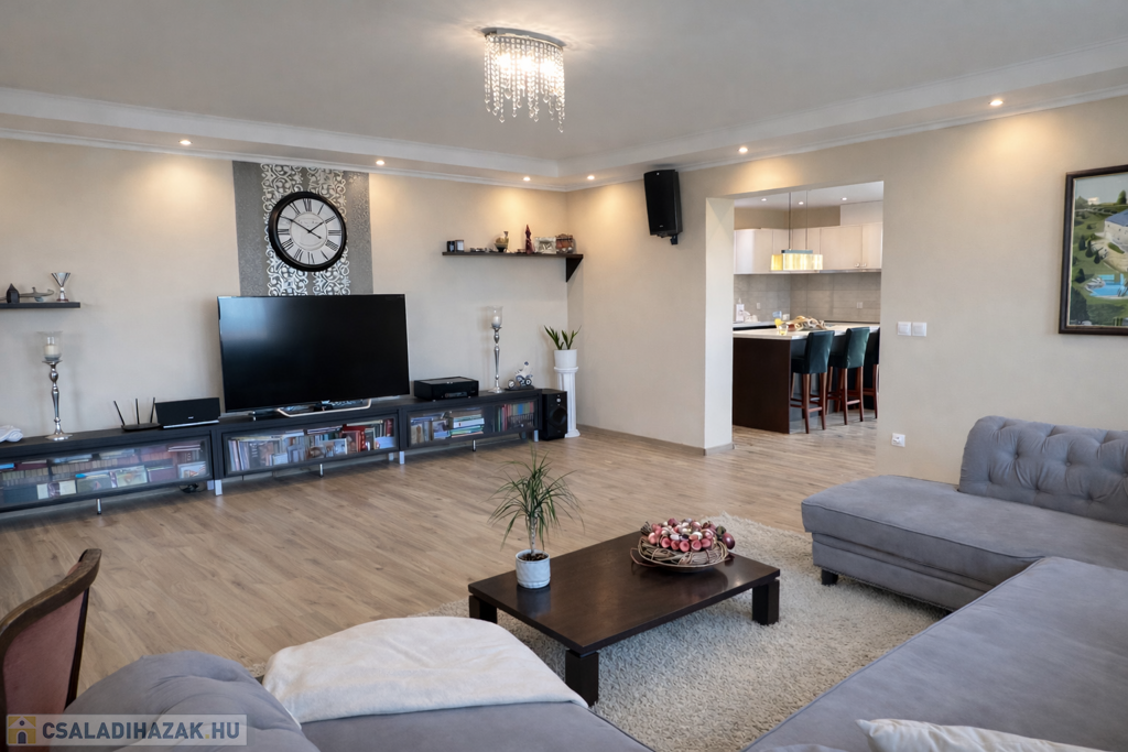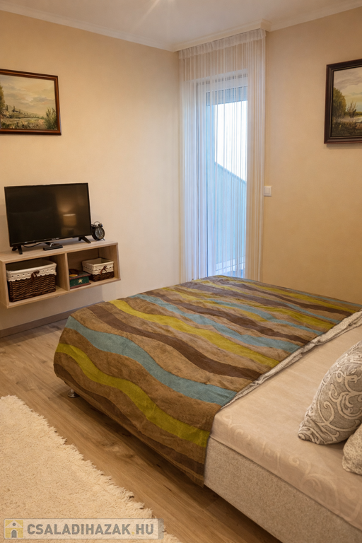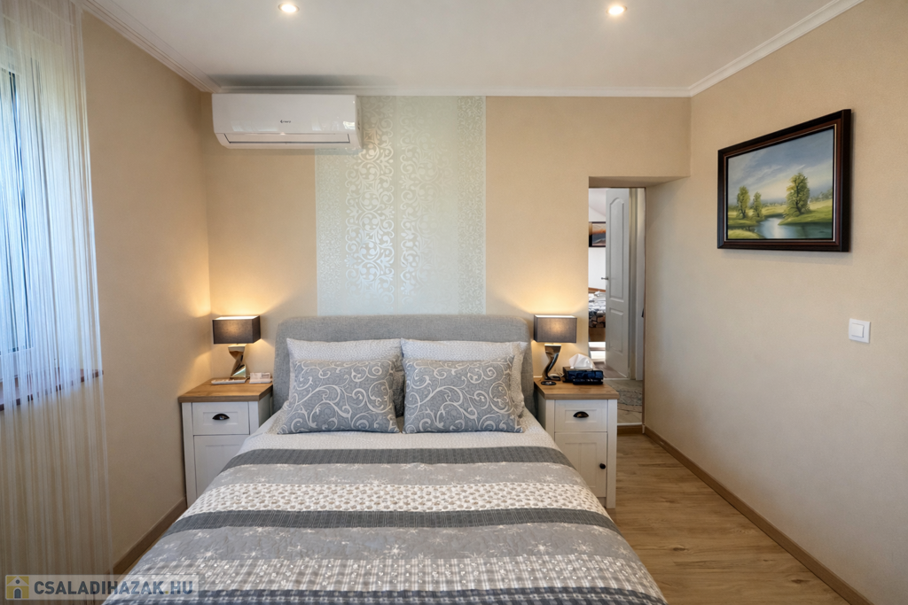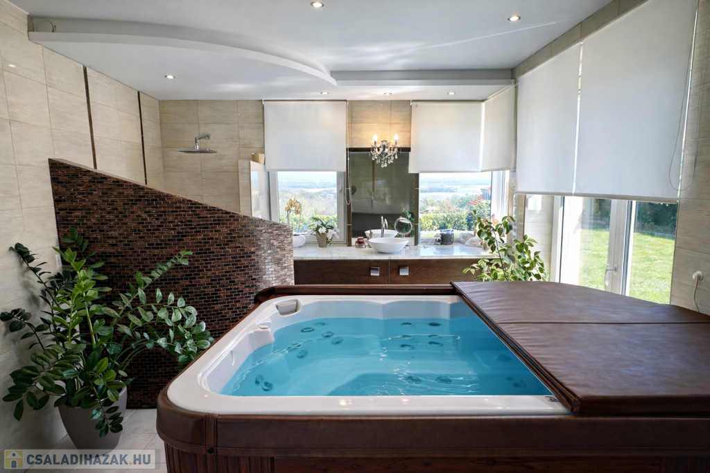 Az ingatlan praktikus elrendezésű: tágas nappali és 5 külön nyíló hálószoba biztosítja a kényelmes életteret család és vendégek számára egyaránt. A fürdőszobában jacuzzi is található.