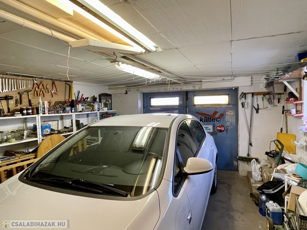 - Pince és garázs (60 m²): tárolók és egy gépkocsi számára kialakított hely