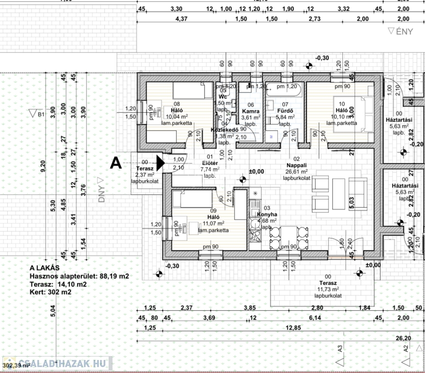 A 302 m²-es, leválasztott telekrész ideális nagycsaládosoknak, kertbarátoknak, vagy bárkinek aki, jól használható kertre vágyik.